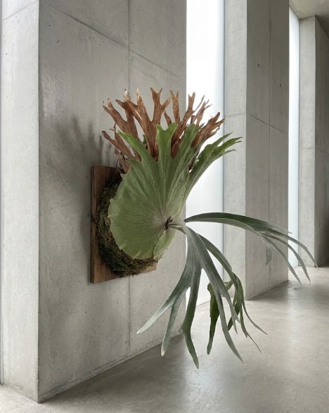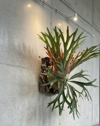 そこでおすすめしたいのが、ビカクシダ本来の樹木に着生する自然な姿を再現する、コルク樹皮や杉板などへの「板付(いたづけ)」という仕立て方です。